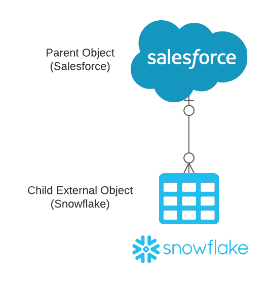 An ecommerce company use Salesforce to record sales to the standard objects Accounts and Contacts. However, due to the nature of its products, order are contained in a large dataset that's too large to be stored on-platform. Orders and product details are stored off-platform in a cloud data warehouse, Snowflake.