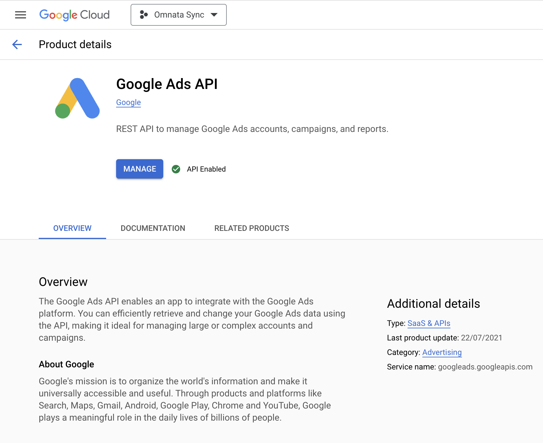 You can see if your access is complete by searching 'Google Ads API' in the Google Cloud universal search bar