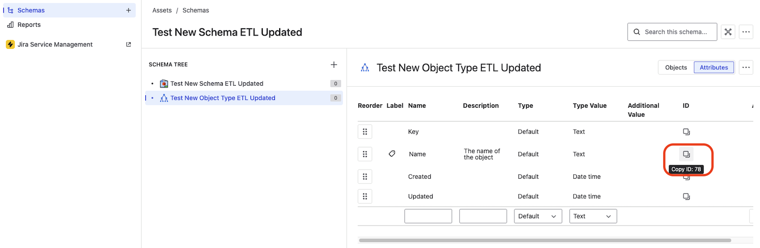 When syncing an Asset Object, you must provide an Object Type ID, which can be found in the list of types underneath the Schema Tree:
