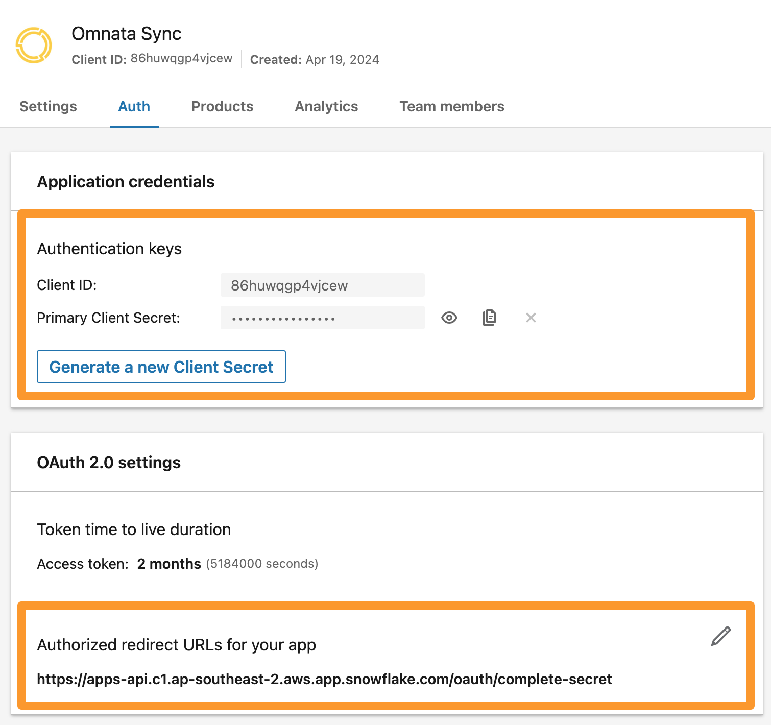 OAuth with LinkedIn uses your own OAuth credentials, not Omnata's. To create them: