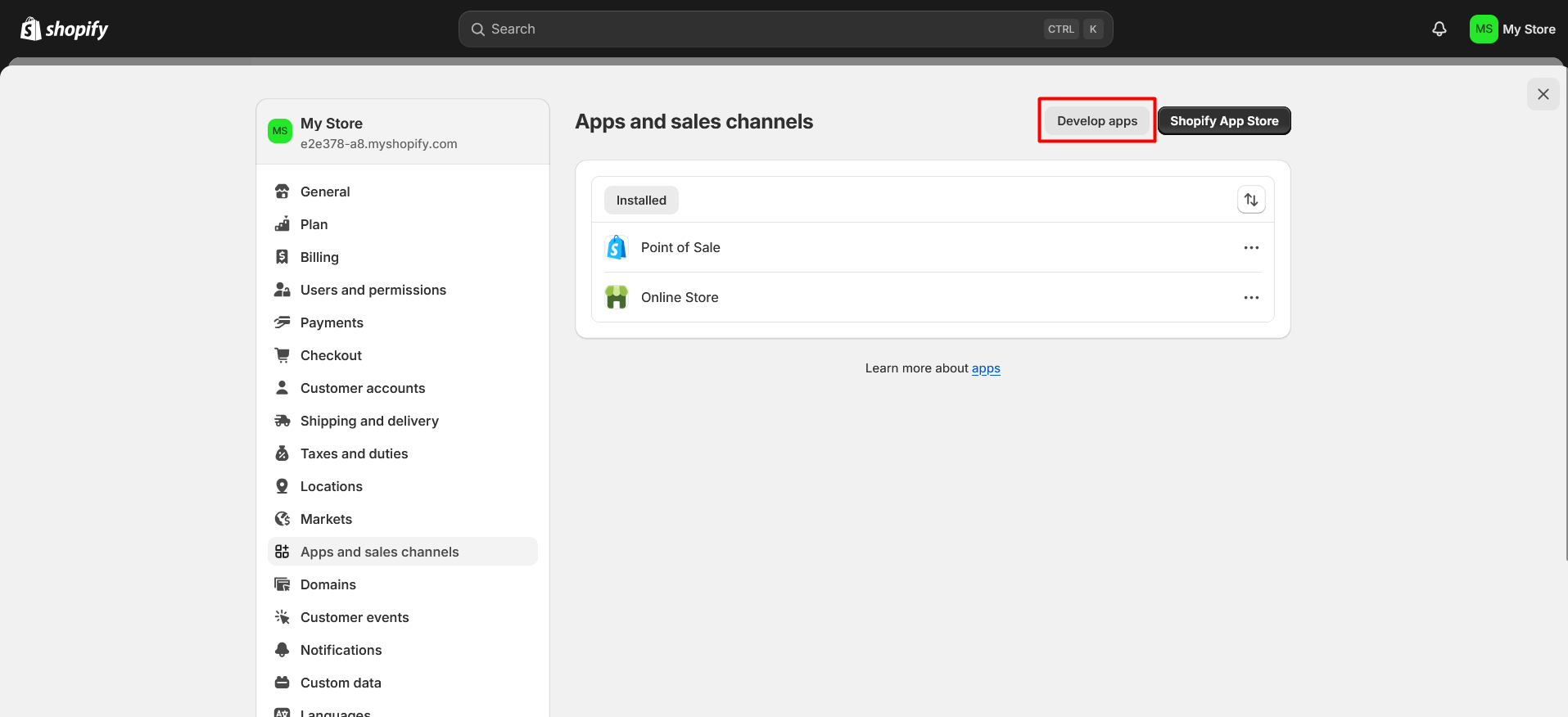 3. In Settings, click on **Apps and sales channels**.