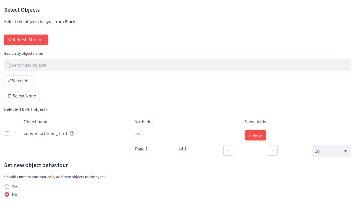 This can be a dynamic list of things from the app, but in our case we're just defining "conversations\_list" (Slack's internal term for Channels) as the only available stream.